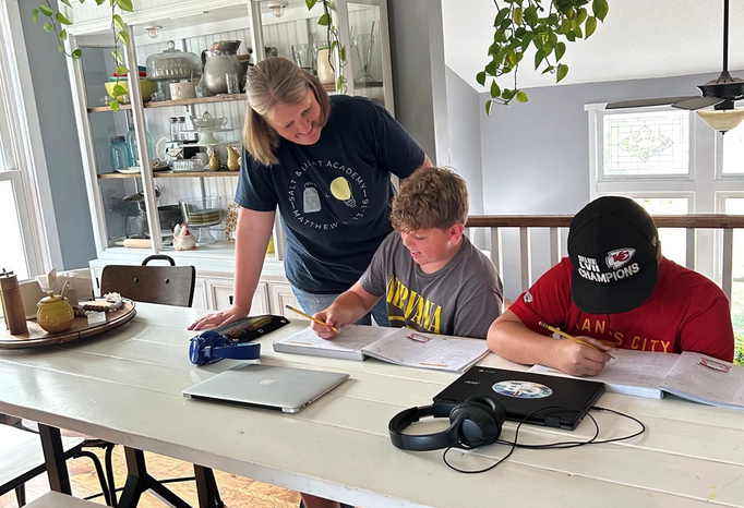 Top image: Jennifer Hunt works with students at Salt + Light Academy in Kansas. Photo: Kerry McDonald